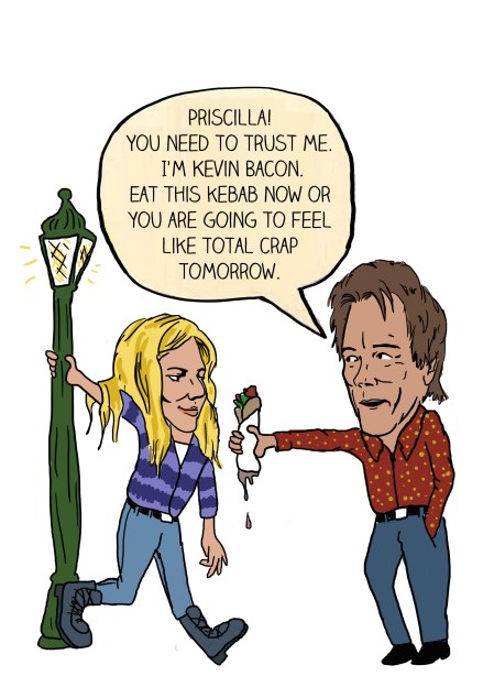 I’m ten days in and Dry July has me cooking some serious Bacon. Lucia Giuffre was the first to donate so she receives the first Kevin Bacon artwork. My Dry July team mate is award winning playwright: Jessica Bellamy. Jess is offering to write fan-fiction for every donation she receives. When Lucia donated to both Jess and myself she requested Jess and I collaborate on a Kevin Bacon/slasher fan-fiction creation involving David Attenborough and the underground cave systems of Mexico. The story is pretty saucy, I’m not going to lie, I haven’t been this aroused since I met Richard Wilkins at the boner factory.